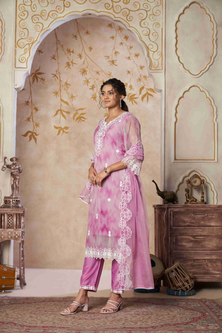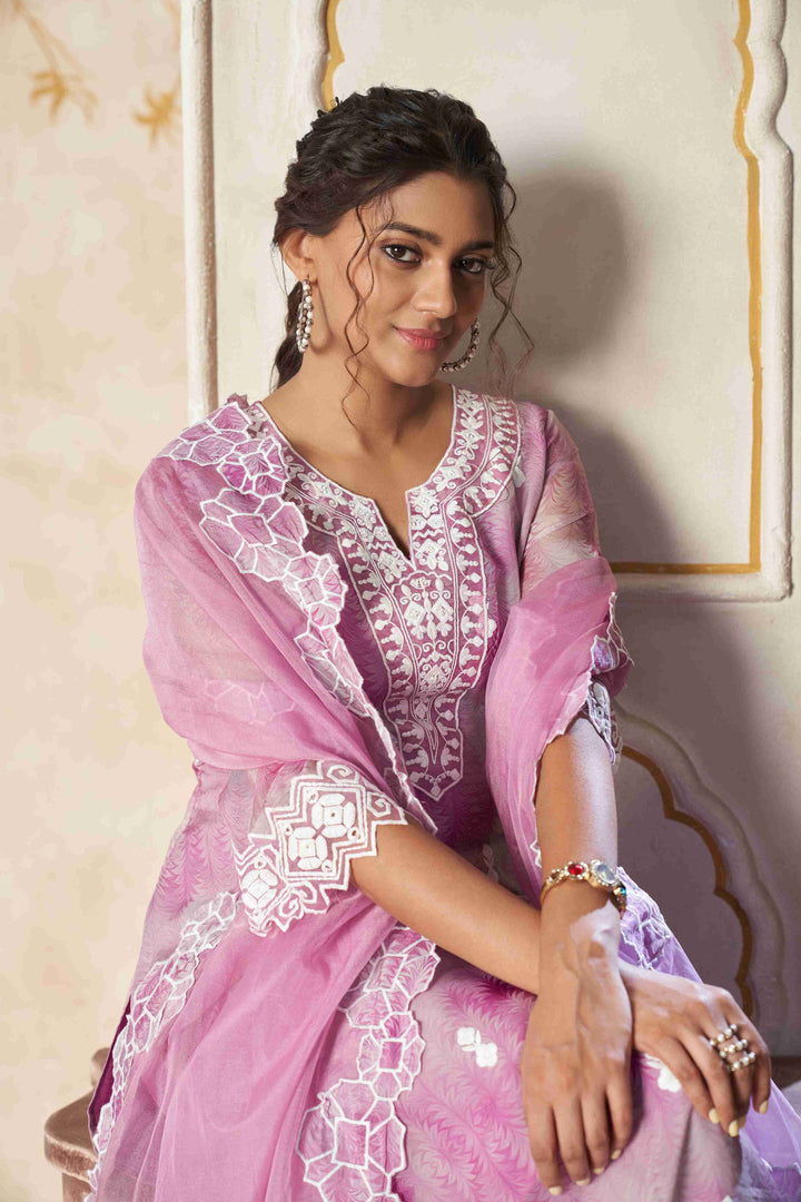 Pink Chikankari Embroidered Georgette Suit Set with Dupatta